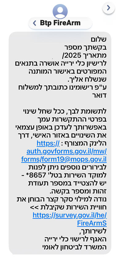 קבלת אישור מותנה מהבט"פ — האישור שמאפשר לגשת למטווח ולבצע את קורס הירי.